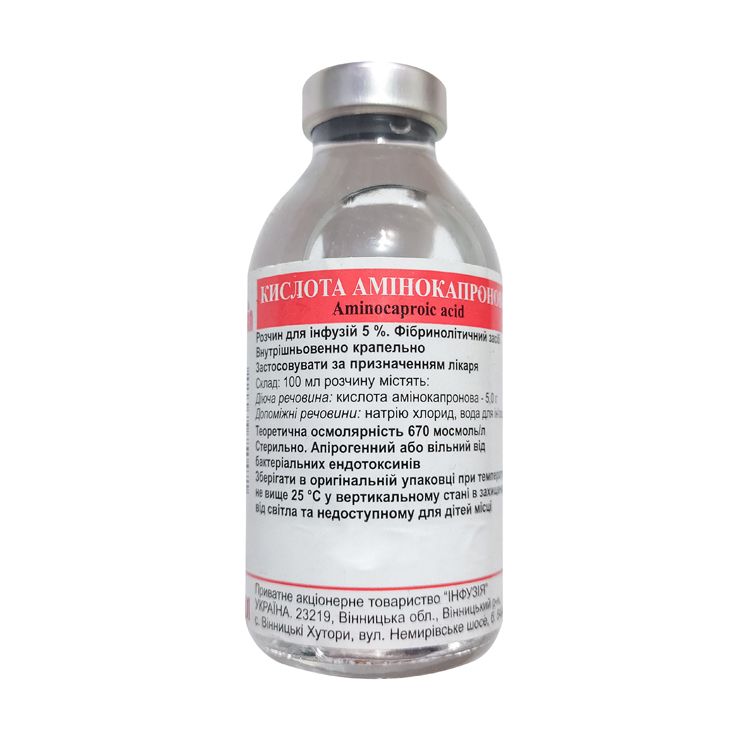 Аминокапроновая кислота - производное аминокислоты лизина, которое действует как антифибринолитик, ингибируя активаторы плазминогена и тем самым уменьшая превращение плазминогена в плазмин. Этот эффект предотвращает распад фибрина, стабилизирует сгустки крови.