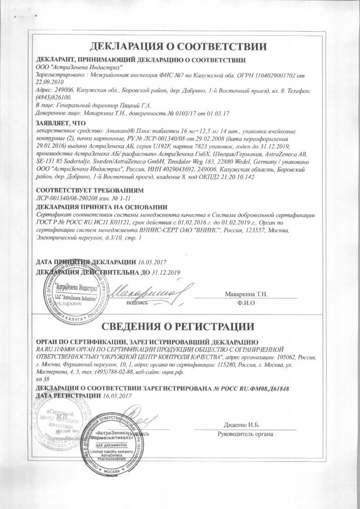 Прежде чем купить Атаканд плюс 16мг/12,5мг в ближайшей аптеке, нужно обязательно проконсультироваться с врачом. Самолечение опасно для Вашего здоровья.