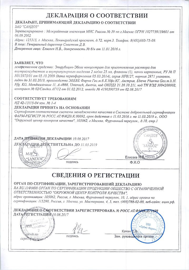 Прежде чем купить Эпирубицин в ближайшей аптеке, нужно обязательно проконсультироваться с врачом. Самолечение опасно для Вашего здоровья.