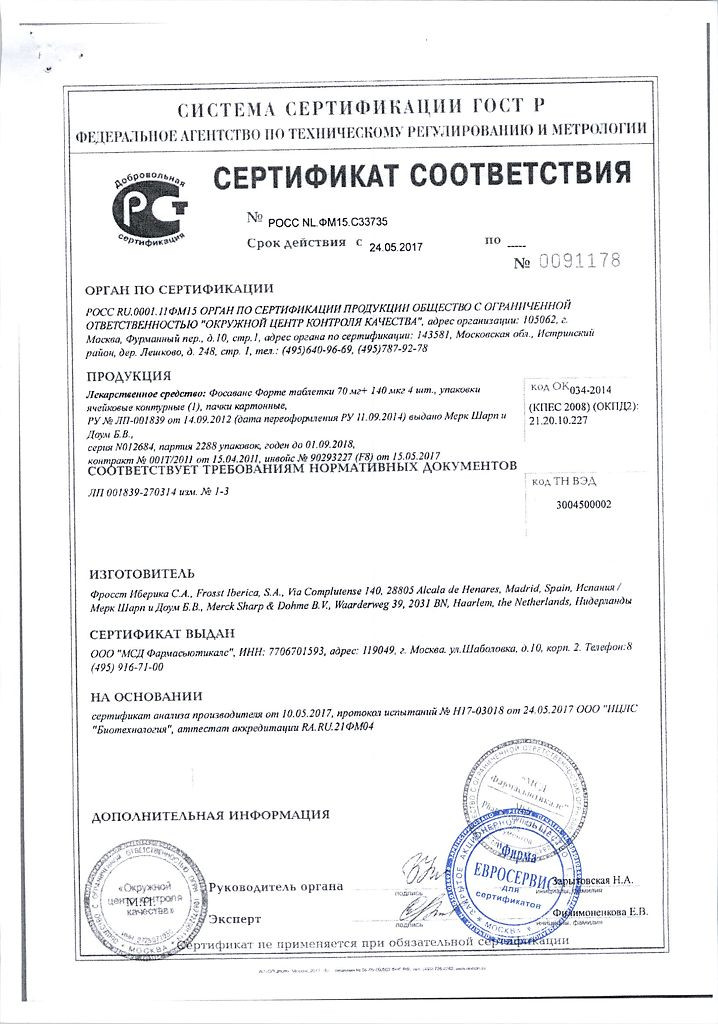 Прежде чем купить Фосаванс в ближайшей аптеке, нужно обязательно проконсультироваться с врачом. Самолечение опасно для Вашего здоровья.