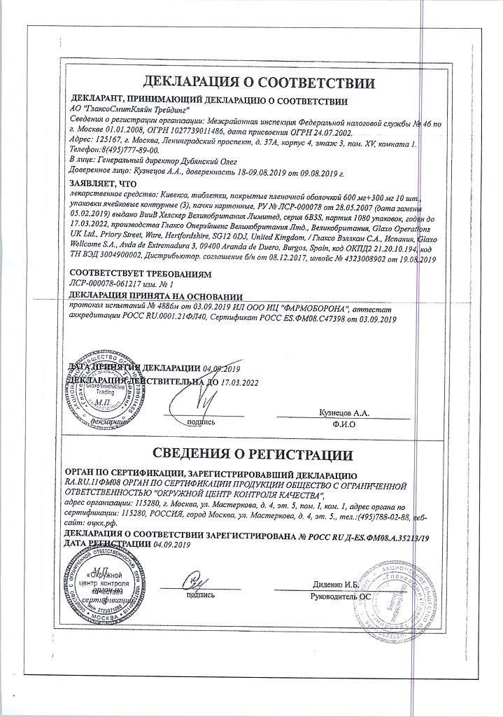 Обычно препарат назначают взрослым и подросткам в дозе 1 таблетка один раз в день, через равные промежутки времени. Таблетку всегда следует принимать целиком, с пищей или без пищи, запивая большим количеством воды. Kivexa не следует назначать взрослым или подросткам, которые весят меньше 40 кг. Лекарство следует принимать регулярно, а продолжительность лечения определяет врач.