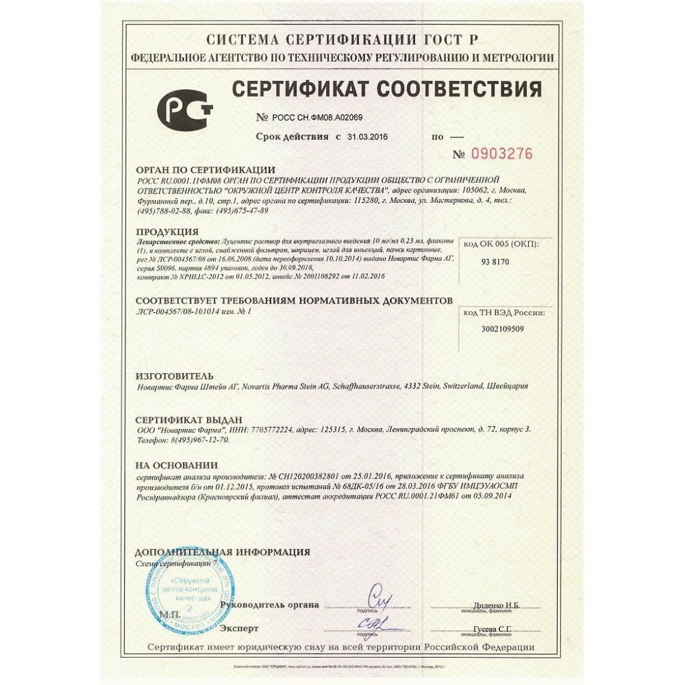 💰 Доступные цены на раствор для внутриглазных инъекций Луцентис 10мг/мл 0,23мл №1.
