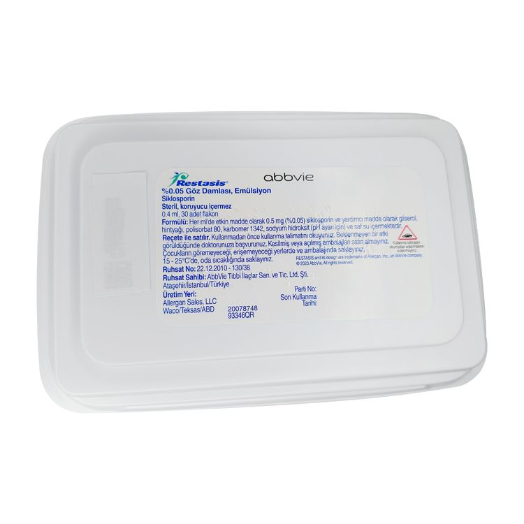 Рестасис представлен в виде офтальмической эмульсии. Каждая упаковка содержит 30 одноразовых флаконов, каждый из которых содержит 0,4 мл стерильной эмульсии.