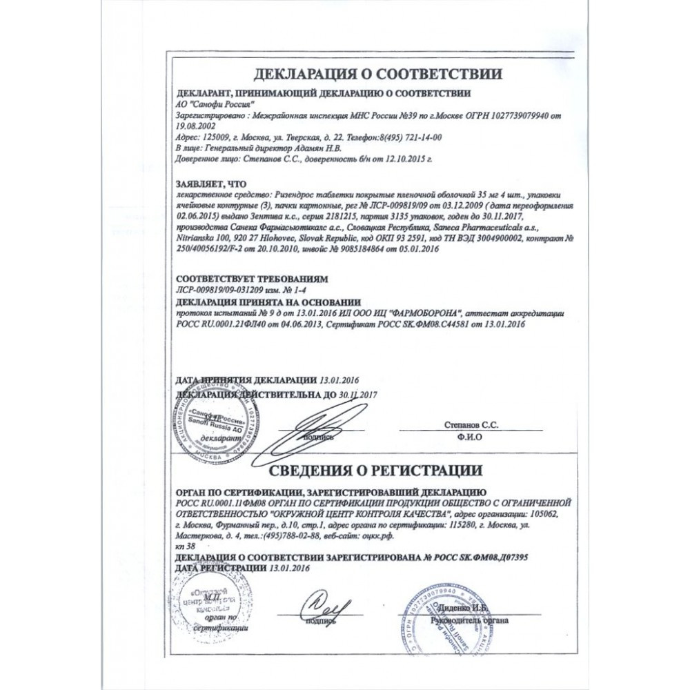 Прежде чем купить Ризендрос :: Норифаз (Ризедронат) в ближайшей аптеке, нужно обязательно проконсультироваться с врачом. Самолечение опасно для Вашего здоровья.